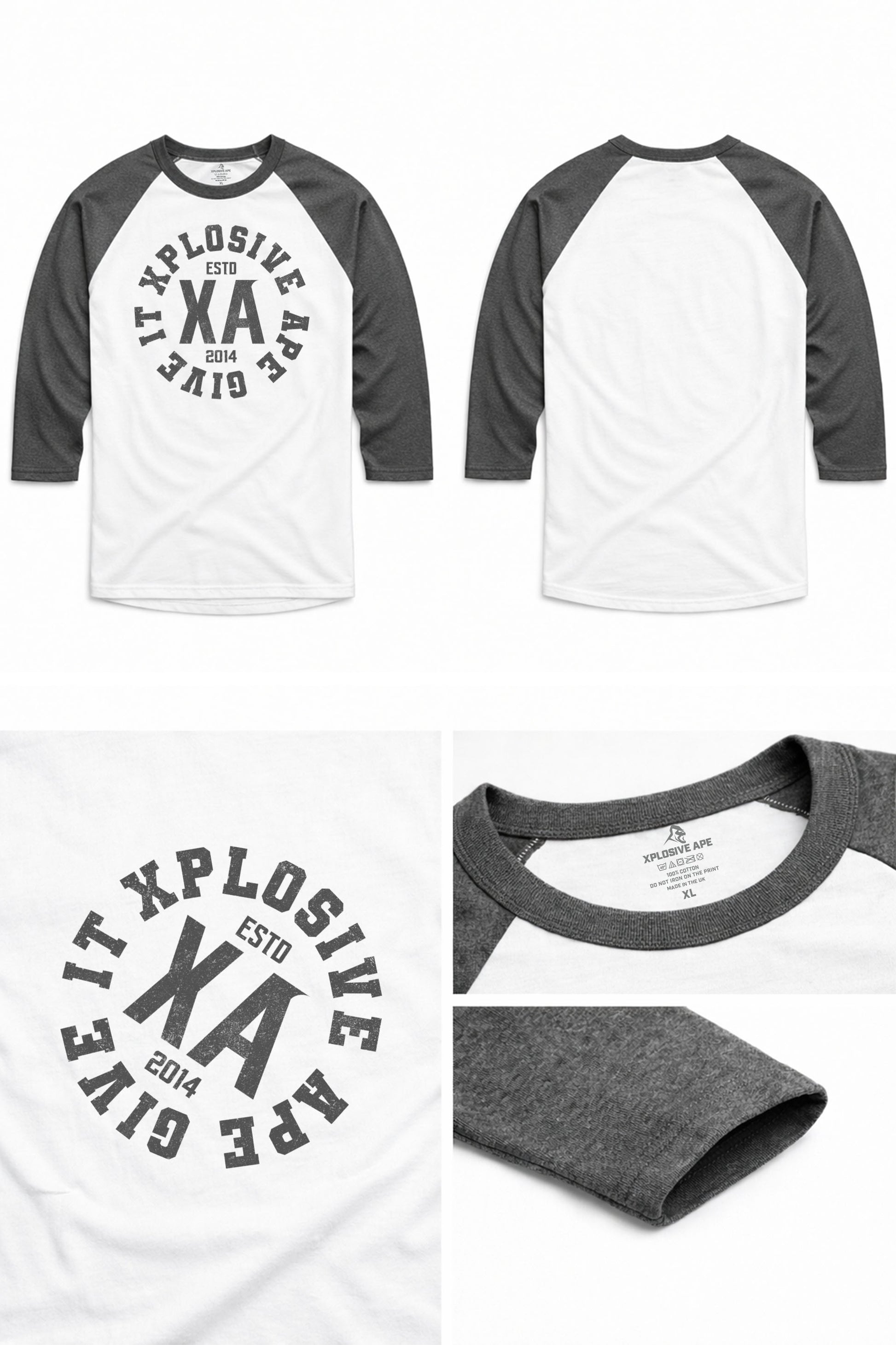 XAPE Proline Raglan 3/4 Sleeve Tee - White/Dark Heather